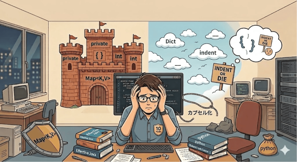 この「We are all consenting adults(私たちはみんな、同意した大人だ)」というPythonの哲学。無駄なコードを省き、シンプルさを追求する文化に触れると、Javaの堅牢さが時に「過保護」に見えてくることもあります。